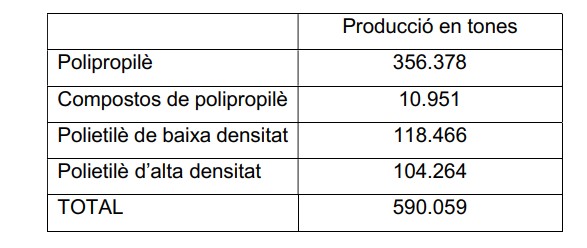 Quantitats de producció de pèl·lets de Repsol Química l’any 2021. Quadre que forma part de l’expedient de la investigació dels Agents Rurals.