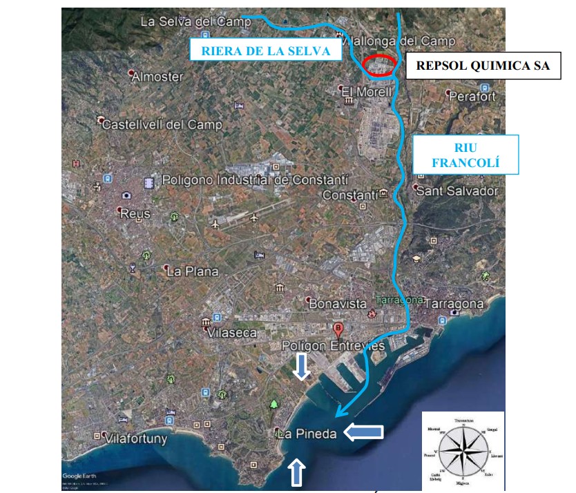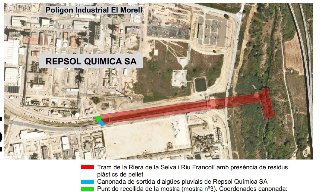 Durant la investigació dels Agents Rurals, aquests havien inspeccionat l’exterior de les instal·lacions de Repsol Química, trobant gran quantitat de pèl·lets a la riera de la Selva en el punt que aquesta desemboca al riu Francolí.