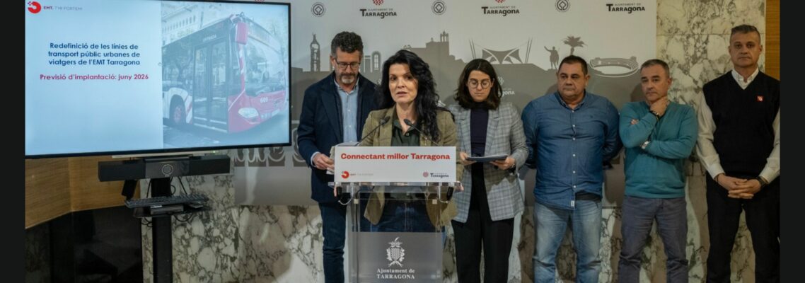 FOTO: La presidenta de l’EMT, Sonia Orts, durant una roda de premsa. Al seu darrera, amb barba, el gerent de l’empresa, Joan Manrubia. AUTOR: Joan Carles Borrachero / Ajuntament de Tarragona.